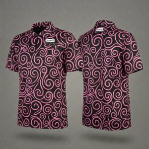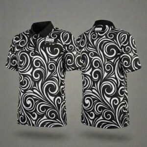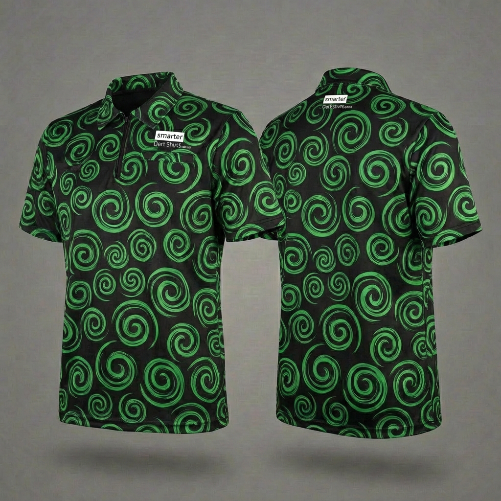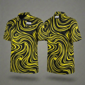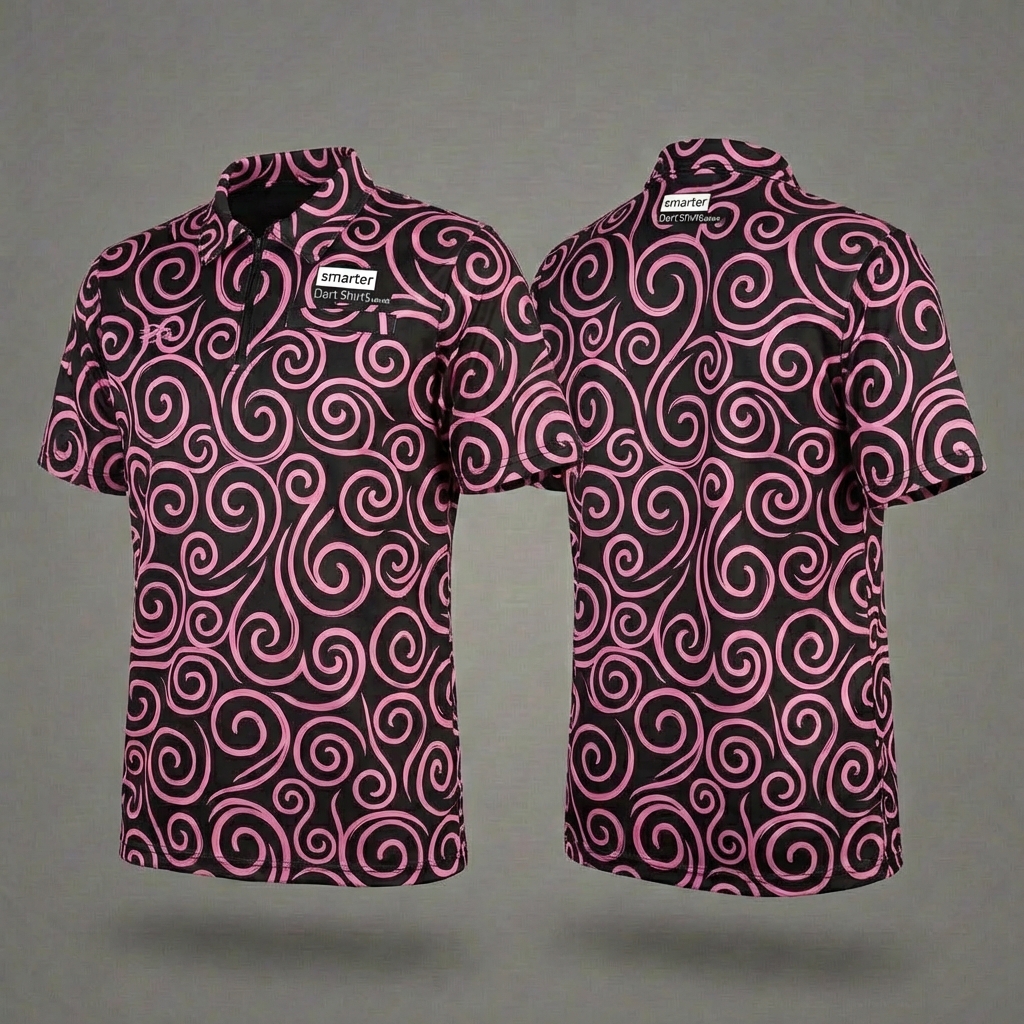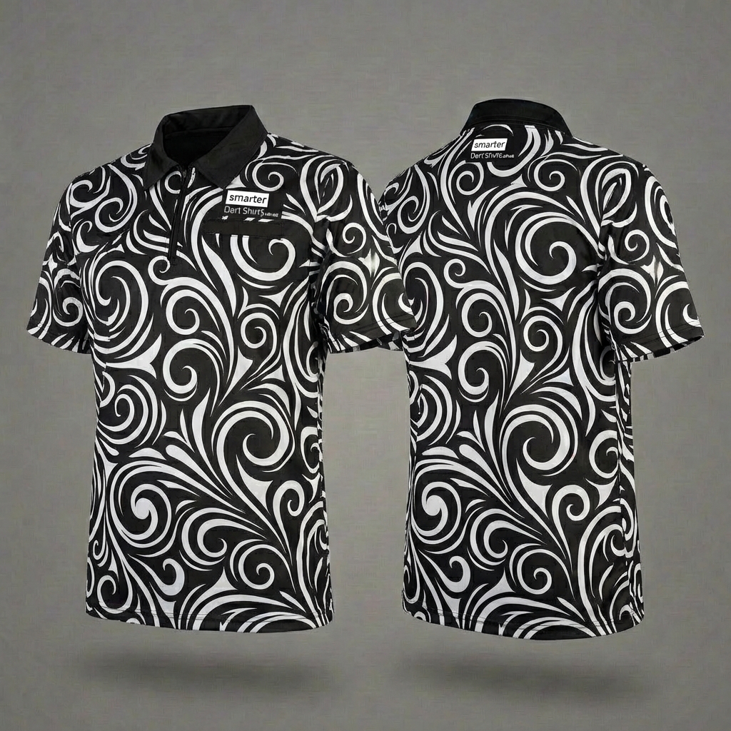 A bold and modern dart shirt featuring dynamic swirl patterns, available in multiple colourways and fully customisable to suit your style.