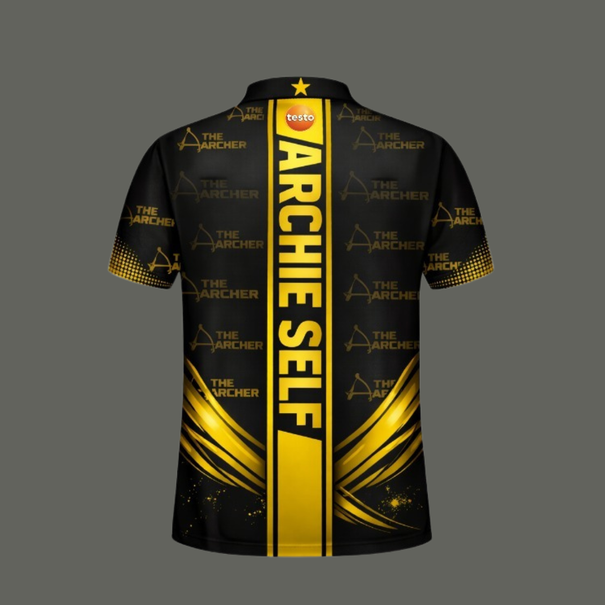 Bold fishing inspired dart shirt featuring Callum “The Big Fish” design, available in multiple colourways and fully customisable with your name and nickname.